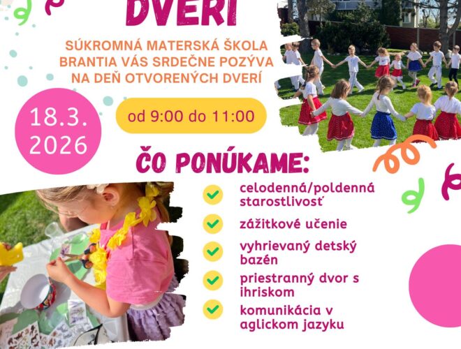 Zápis detí do našej súkromnej materskej školy Brantia pre školský rok 2026/2027 prebieha od 1. mája do 20….